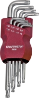 Sada zahnutých klíčů TORX s kuličkou v plastovém klipu. Extra dlouhá forma.