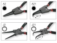4-dílná souprava kleští na pojistné kroužky A2 - A21 - J2 - J21 je nezbytným nástrojem pro profesionály, mechaniky, opraváře a všechny, všude tam, kde se manipuluje se segerovými kroužky. Sada vám poskytne širokou škálu možností a flexibilitu pro různé aplikace. Kleště jsou vyrobeny z vysoce kvalitních materiálů a jsou vybaveny tvrzenými špičkami a dvojitou izolací rukojetí, které zajišťují bezpečnost při práci. Kleště jsou ideální pro montáž pojistných kroužků na hřídelích o průměru od 19 do 60 mm. Stabilní hroty zabraňují sesmeknutí pojistného kroužku a zajišťují bezpečnou a snadnou práci. Sada obsahuje kleště rovné a zahnuté. Kleště jak pro vnitřní kroužky, tak pro vnější.