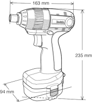 - Krátký, kompaktní rázový utahovák s celkovou délkou jen 163 mm.