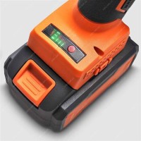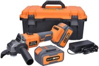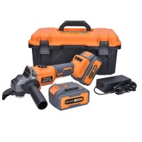 Úhlová aku bruska vybavena dvěma Li-ion akumulátory 21V 4Ah. Nabití brusky trvá cca 2,5 hodiny. U brusky lze nastavit otáčky tří úrovní 3500, 5500, 7000 ot./min. Bezuhlíkový motor zajišťuje nižší ztráty, účinnější přenos výkonu a delší životnost. Bruska disponuje aretaci vřetena SPINDLE LOCK usnadňující výměnu kotoučů. Pohodlí a kontrolu zaručuje tělo z odolného plastu, protiskluzovým povrchem a dvoupolohovým držadlem. Převodovka je uložena v krytu z hliníkové slitiny. Nástroj je kompaktní díky svým rozměrům 38x12x10 cm a šířkou kotouče 100 mm.