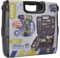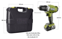 Praktická sada aku šroubováku s vrtáky bity a základním nářadím. Sada je uložena v plastovém kufru. Šroubovák s nízkou hmotností, ergonomickým tvarem a vyvážením, díky čemuž je s tímto šroubovákem příjemnější práce s menší únavou. Součástí aku šroubováku je integrovaná LED svítilna, která při práci osvětluje pracovní místo.