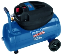 Kompresor HC 24o je vhodný do každé domácí dílny. Kompresor je v podstatě bezúdržbový a to díky nové bezolejové technologii. Motor kompresoru se zapíná jen v případě, že tlak ve vzdušníku klesne pod požadovanou úroveň. Vzdušník o objemu 24l, sloužící jako zásobárna vzduchu a díky němuž můžete provádět i náročnější operace a nejen běžné huštění a ofukování. Ke kompresoru lze bezproblému připojit sponkovačku, mycí pistoli atd.. Kompresor zvládne i méně náročné stříkací práce s barvou, nebo k němu můžete připojit další pneumatické nástroje. Při dofukování pneumatik ap. zase oceníte jednoduché nastavení výše tlaku, který můžete snadno kontrolovat pomocí vestavěného manometru. Přídavná rukojeť a kolečka umožní snadnou manipulaci se strojem.