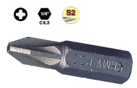 Šroubovací bity pro šroubky s křížovou hlavou typu PZ (pozidrive). Bity jsou vyrobeny z oceli S2. Délka bitů 25mm. Upínací 6-ti hran 1/4".