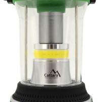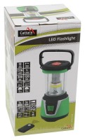 Kempingová svítilna s výkonnou COB LED o světelném toku 300 lm poskytuje 360° osvětlení a je vybavena dálkovým ovládáním. Obsahuje i ruční svítilnu se svítivostí 120 lm. Přepínání režimů (bílé a červené světlo) je možné přímo na svítilně nebo pomocí dálkového ovládání. Svítilna je napájena 3x LR20 (velký monočlánek) bateriemi, které poskytují výdrž 3 hodiny v režimu plného svitu. Ruční svítilna, která je skryta v úložném prostoru je napájena tužkovými bateriemi 3x AAA. Ovladač je napájen tužkovými bateriemi 2x AAA. Baterie nejsou součástí balení. Svítilna je vyrobena z odolného, částečně pogumovaného plastu a plexiskla. Je odolná proti stříkající vodě (IP44) a vybavena sklopnou rukojetí pro snadné přenášení a zavěšení. Svítilna disponuje také hákem na zavěšení. Kempingová svítilna zelenočerné barvy má rozměry 100 x 210 mm a je ideální pro kempování, stanování nebo na zahradu u táboráku.