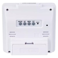 Moderní digitální teploměr je praktickým pomocníkem do každé domácnosti. Díky přehlednému LED displeji o velikosti 60 × 65 mm máte vždy k dispozici aktuální informace o vnitřní teplotě, vlhkosti i čase. Teploměr měří vnitřní teplotu v rozmezí od 0 °C do 50 °C a vnitřní vlhkost od 20 % do 90 % s přesností ±1 %. Samozřejmostí je možnost přepínání jednotek °C/°F, nastavení 12/24hodinového formátu času a funkce budíku s opakovaným buzením. Kromě toho teploměr zobrazuje i datum a dokáže zaznamenat minimální a maximální naměřené hodnoty. Díky kompaktním rozměrům 37 × 93 × 93 mm se snadno vejde na noční stolek, poličku či pracovní stůl a napájí se jednou baterií 1,5 V AA.