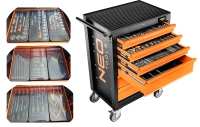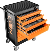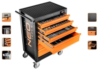 Dílenský vozík s nářadím. Vozík obsahuje 149 dílů nářadí, které je možné uložit do šesti uzamykatelných zásuvek. Zásuvky jsou opatřeny lyžinami s ložisky pro snadné vysunutí. Každá zásuvka má svoji bezpečnostní západku proti samovolnému otevření při transportu. Všechny zásuvky lze kompletně vyjmout z vozíku. Díky velkým pětipalcovým otočným kolům se s tímto vozíkem výborně manévruje. Vozík můžete zatížit váhou až 280 kg.