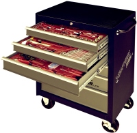 Robustní dílenský vozík s výbavou. Vozík je vybaven 337 kusy nářadí řady KRAFTWERK Junior Line. Dílenský vozík najde uplatnění především v autoopravárenství, v údržbářských dílnách, ale také v průmyslu. 6 plně výsuvných zásuvek na kuličkových ložiscích zajišťují pohodlný přístup k nářadí. Zásuvky jsou vyjímatelné.