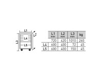 Vozík pro všestranné použití, zejména pak pro základní údržbářské práce v průmyslu a autoopravárenství. Vozík se sedmi zásuvkami na kuličkových ložiscích. Každá zásuvka má nosnost 45 Kg. Robustní konstrukce vozíku s dvojitými srěnami. Nářadí je uloženo v pěnových vložkách.