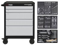 Profesionální dílenský vozík LT700 s 5 zásuvkami a 151 ks nářadí Basic Line. 7 modulů, nosnost zásuvky 45 kg, plný výsuv, centrální zamykání, MADE IN GERMANY.