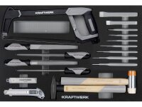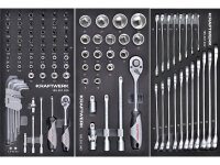 Nářadí je přehledně uloženo v pěnových EVA vložkách, které zajišťují ochranu, organizaci a rychlou kontrolu kompletnosti.