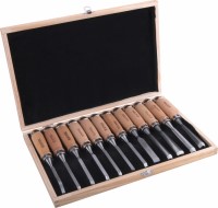 Sada 12-ti kusů dlát. Délka dlát je 200mm. Dláta s různými profily, které umožňují vytvářet rýhy či žlábky, ale i odřezávat tenkou vrstvu dřeva podobně jako hoblíkem. Dláta s dřevěnou rukojetí. Čepele dlát jsou vyrobeny tvrzené oceli 58 - 60 HRC