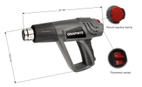 Elektrická horkovzdušná pistole s regukací teploty vzduchu. Tuto horkovzdušnou pistoli s polu s dodávanýma tryskama využijete při odstraňování nátěrů, ohýbání a svařování termoplastů, rozmražování, sušení a dýhování nábytkových dílců. Teplotu pistole si jednoduše nastavíte spínačem ve třech polohách. U druhé a třetí polohy si můžete teplotu dále plynule regulovat regulačním kolečkem na zadní straně pistole. Dvojitá izolace, vestavěný prvek na ochranu proti přehřátí, potažené madlo protiskluzovým materiálem, nízká váha a v neposlední řadě bohaté vybavení dodávané spolu s pistolí, dělá z této horkovzdušné pistole skvělého pomocníka do každé dílny. Horkovzdušnou pistoli vám dodáme v praktickém plastovém kufříku, kde kromě pistole najdete čtyři trysky a jednu škrabku s rukojetí.