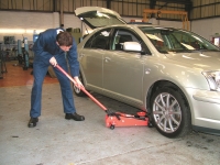 Hlava zvedáku se zvedne do polohy prvního kontaktu s vozidlem jediným zdvihem nožního pedálu.