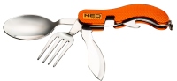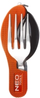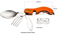 Multifunkční kempingový skládací příbor. Dlouhá životnost a odolnost díky hliníkovému tělu. Jedná se o populární sadu jídelního náčiní, která je vhodná na cesty, pobyt pod stanem, či bivakování. Příbor lze vysunutím rozdělit na vidličku a nůž. Skládací příbor dodáváme s polstrovaným pouzdrem na opasek.