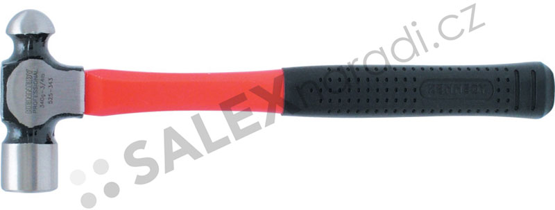 Dílenské kladivo s kulovým nosem. Kladivo má profiilovanou pryžovou rukojeť. Konstrukce rukojeti a její pogumované konce tlumí rázy.