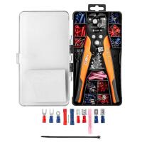 Automatické kleště na konektory a odizolování (205 mm) + sada 230 ks konektorů jsou všestranným pomocníkem pro elektrikáře, servisní techniky i náročné kutily. Jedná se o praktickou sadu, která umožňuje rychlou, přesnou a bezpečnou práci s kabely i konektory. Kleště jsou vybaveny čelními čelistmi z vysoce odolné oceli Cr12MoV s tvrdostí 52–58 HRC, které zaručují dlouhou životnost a přesné lisování. Tělo nástroje je vyrobeno z pevné oceli A3, díky čemuž odolává vysokému zatížení i při každodenním používání. Automatický odizolovací mechanismus pracuje v rozsahu 0,5–6 mm² (22–10 AWG) a výrazně zrychluje práci bez poškození vodiče. Kleště umožňují lisování neizolovaných konektorových svorek v rozsahu 0,5–6 mm² a izolovaných svorek v rozsahu 0,5–8 mm². Nechybí nastavitelná zarážka délky odizolování ani integrovaná řezačka kabelů. Ergonomická dvousložková rukojeť z materiálů TPR + PP zajišťuje pohodlný, pevný a bezpečný úchop i při delší práci. Součástí balení je bohatá sada 230 kusů konektorů a příslušenství, která pokryje většinu běžných elektroinstalačních aplikací. Hlavní výhody této sady jsou automatické odizolování a lisování konektorů, kvalitní ocelové provedení pro dlouhou životnost, ergonomická rukojeť pro komfortní práci a bohatá sada konektorů v balení