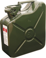 Kovový kanystr s pákovým bezpečnostním utěsněným uzávěrem a integrální rukojetí.