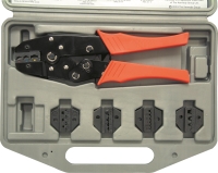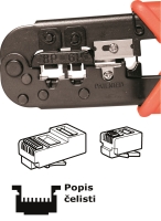 Krimpovací kleště s ráčnovým krimpovacím mechanizmem a nastavitelným krimpovacím tlakem.