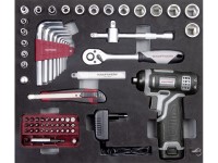 Kufr s nářadím. Kufr je naplněn 103 kusy nářadí v provedení pro profesionály. Je vhodný pro všestranné použití. A to zejména pro základní údržbářské práce v průmyslu i autoopravárenství. Proti nárazu je kufr chráněn hliníkovým rámem.