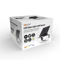 Solární LED osvětlení, které je vhodné na místa bez přívodu elektrické energie. Nastavení času svícení se pohybuje mezi 10-60s. Reflektory lze horizontálně a vertikálně otáčet i naklánět stejně jako solární panel. Nastavitelné světelné a pohybové čidlo má úhel senzoru 110° a detekční vzdálenost 8m. Baterie se solárním panelem nabíjí zhruba 8 hodin v závislosti na světelných podmínkách. Čistá doba svícení je jedna hodina.