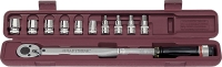 Momentový klíč s přepínáním a příslušenstvím.