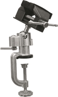 Hliníkový svěrák s kulovým kloubem uzamknutelným ve dvou polohách, litinovými čelistmi a vychylovacírn mechanizmem.