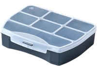 Kvalitní plastový organizér s 8 přihrádkami pro uložení drobných předmětů. Určitě ho využijete pro uložení šroubků, matiček, hřebíků a drobných součástek. Organizér má průhledné víko a jednoklipsové zavírání.