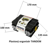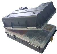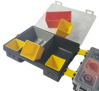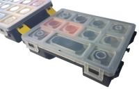 Kvalitní plastový organizér s pevnou konstrukcí. Organizér se skládá ze dvou samostatných boxů k sobě spojenými panty. Boxy jsou naplněny barevnými vyndávacími krabičkami různých velikostí. Organizér je ideální pro uložení šroubků matiček hřebíků a dalších drobných součástek.