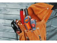 Kožený pás na nářadí, který usnadní práci a udrží nářadí v dosahu. Tento pás má 3 kapsy s přehybem, které lze pohodlně prostrčit opaskem. Kapsy zahrnují 1 velkou, 1 střední a 1 malou kapsu, takže lze snadno organizovat nástroje. Kromě toho je pás vybaven držákem na kladivo a úchyty pro tužku nebo šroubovák. Tento praktický pás je ideální pro řemeslníky a pracovníky, kteří potřebují mít své nářadí stále po ruce.
