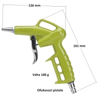 Krátká ofukovací pistole určena pro práci při maximálním tlaku 8 baru. Pistole je vhodná pro vyfukování nečistot z méně přístupných míst. Kovové tělo ofukovací pistole je zárukou dlouhé životnosti.