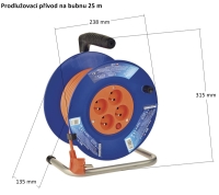 Prodlužovací kabel na bubnu 25 m. Kvalitní naviják prodlužovacího přívodu. Reflexní barva izolace pro lepší viditelnost v rozvinutém stavu. Nižší pořizovací náklady prodlužovacího kabelu díky PVC izolaci.