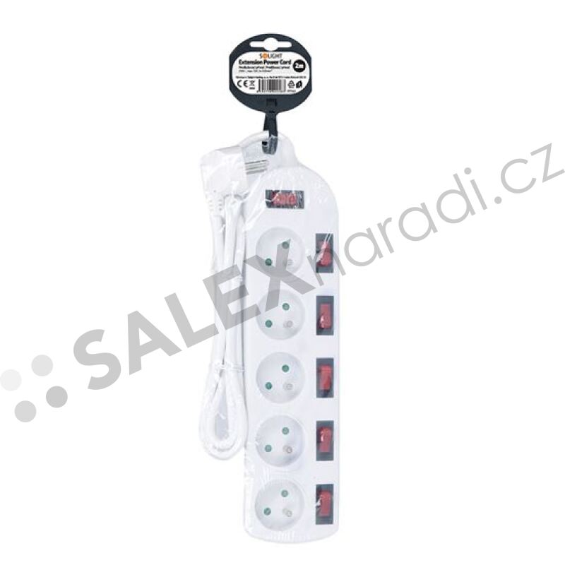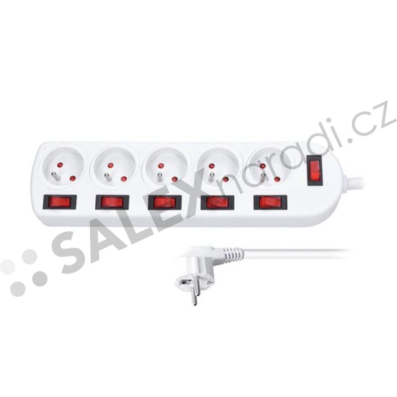 - Prodlužovací přívod, 5 zásuvek, bílý, 6x vypínač, 2 m.