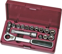 17-dílná 1/4" průchozí gola sada v plastovém kufru.