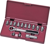 14-dílná 3/8" průchozí gola sada v plastovém kufru.