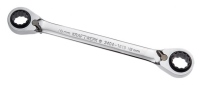 - Oboustranný ráčnový klíč s přepínací páčkou se čtyřmi rozměry.
