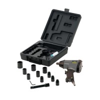 Souprava s rázovým utahovákem, která je určená pro univerzální použití. Gumová rukojeť poskytující ochranu před chladem a snižující vibrace. Kroutící moment lze nastavit pomocí ventilu pro regulaci vzduchu. Nabízí snadnou manipulaci díky jednoručnímu přepínání z pravého chodu na levý. Určená na lehké / středně těžké montážní práce. Disponuje příklepovým mechanismem. Sada je dodávaná v plastovém kufru.
