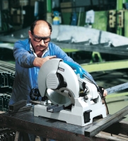 Rozbrušovací pila na kov s kotoučem pro řezání za studena se 60 zuby.
