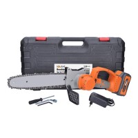 Ruční akumulátorová pila je napájená Li-Ion baterií 21V 4Ah s dobou nabití cca 240 min. Vybavena hliníkovou lištou délky 255 mm a bezuhlíkovým motorem s vysokou životností a výkonem 840 W. Pila váží 2,1 kg a díky protiskluzové úpravě držadla se s pilou jednoduše a bezpečně manipuluje. Řezná rychlost dosahuje 5 m/s. Disponuje také pojistkou proti náhodnému spuštění.