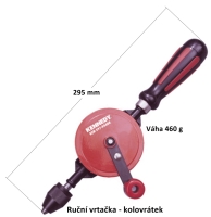 Malá ruční vrtačka se dvěma hnacími pastorky. Těleso vrtačky je vyrobené tlakovým litím. Plastová rukojeť má šroubovací horní díl pro uskladnění vrtáků. Sklíčidlo vrtačky pro vrtáky do 8,5 mm. Ruční vrtačka je vhodná pro drobné vrtací práce.