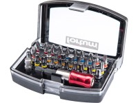 Tato sada 32 hrotů z vysoce kvalitního materiálu S2 je ideálním řešením pro různé šroubovací úkoly. Sada obsahuje hroty různých typů a velikostí, které jsou vhodné pro širokou škálu aplikací. Materiál je S2, známý svou vysokou pevností a odolností. V sadě je také magnetický držák Flix-Clip 65 mm pro snadné použití a adaptér 1/4" pro kompatibilitu s většinou šroubováků a vrtaček. Tato sada hrotů je perfektní volbou pro profesionály i domácí kutily, kteří hledají spolehlivý a univerzální nástroj pro své projekty. Sada nejpoužívanějších barevně rozlišených šroubovacích bitů FORTUM z kvalitní oceli S2.