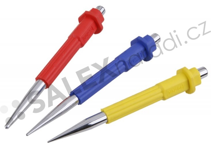 Sada důlčíků (3 kusy) je ideálním nástrojem pro přesné označování materiálu před vrtáním. Obsahuje tři důlčíky s průměry 0,8 mm, 1,5 mm a 2,5 mm, což umožňuje jejich využití pro různé typy prací. Díky kvalitnímu a odolnému materiálu je sada vhodná pro dlouhodobé používání. Důlčíky mají ergonomický tvar, který zajišťuje pohodlnou manipulaci a přesné vedení při práci. Pomáhají předejít sklouzávání vrtáku a usnadňují následné vrtání. Sada nabízí výborný poměr cena/výkon a je skvělou volbou pro domácí kutily i profesionály. Tento praktický nástroj by neměl chybět v žádné dílně. Díky širokému využití a vysoké kvalitě zpracování se jedná o spolehlivý doplněk pro každodenní práci.