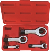 Sada přípravků určená pro uvolňování poškozených nebo zadřených matic. Přípravky jsou vyrobeny z kalené a temperované oceli, zápustkově kované pro zvýšení odolnosti. Sada obsahuje 4 různé velikosti přípravků pro maticové velikosti v rozsahu 9 - 27 mm (3/8 - 11/16"), což je dostačující pro běžná šroubová spojení.