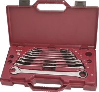 Sada prodloužených ráčnových klíčů s vysokým točivým momentem díky zesíleným hlavám ráčen.