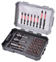 Sada nárazových bitů 36 ks s torzní zónou, která slouží k absorbování točivého momentu, což snižuje opotřebení bitů. Bity jsou vyrobeny z kvalitní oceli X5 poskytující vysokou odolnost. Sada obsahuje křížové, ploché, HEX, TORX a čtvercové bity.
