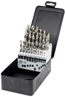 25-dílná sada spirálovitých vrtáku do kovu HSS-G v kovové krabičce.