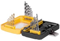 Sada vrtáků a bitů v kufříku obsahuje 35 kvalitních nástrojů, které jsou ideální pro různé práce. Praktické balení nabízí široký výběr vrtáků a bitů vhodných pro vrtání do kovu, dřeva a zdiva. Sada zahrnuje: 6x HSS vrtáky s povrchovým titanovým povlakem (1,5-6 mm), 6x opískované vrtáky do zdiva (3-8 mm), 6x vrtáky do dřeva (3-8 mm), 3x PH bity (6-10 mm), 2x 25 mm bity (SL, PH, PZ, TORX), 1x držák bitů, 1x záhlubník. Vše je přehledně uspořádáno v pevném kufříku, ideálním pro snadné přenášení a skladování. Tato sada je ideální pro kutily i profesionály.