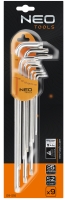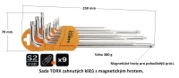 Magnetická 9-ti dílná sada zahnutý klíčů torx. Sada je vyrobena z legované oceli S2. Klíče jsou umístěny v praktickém plastovém obalu.
