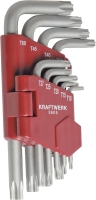 Sada zahnutých klíčů TORX v plastovém klipu.