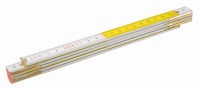 Skládací metr plastový bíložlutý o délce 1m a šířce 15 mm.