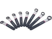 8-mi dílná souprava očkových ráčnových klíčů na trubky. Klíče jsou ideální na převlečné matice. Jsou také vhodné tam, kde není možné použití uzavřeného ráčnového očka. Očko klíče se rozevře, nasadí na šroub/matici, následně se uzavře a pohybem klíče dochází k dotahovaní/povolování bez nutnosti přenastavování klíče.